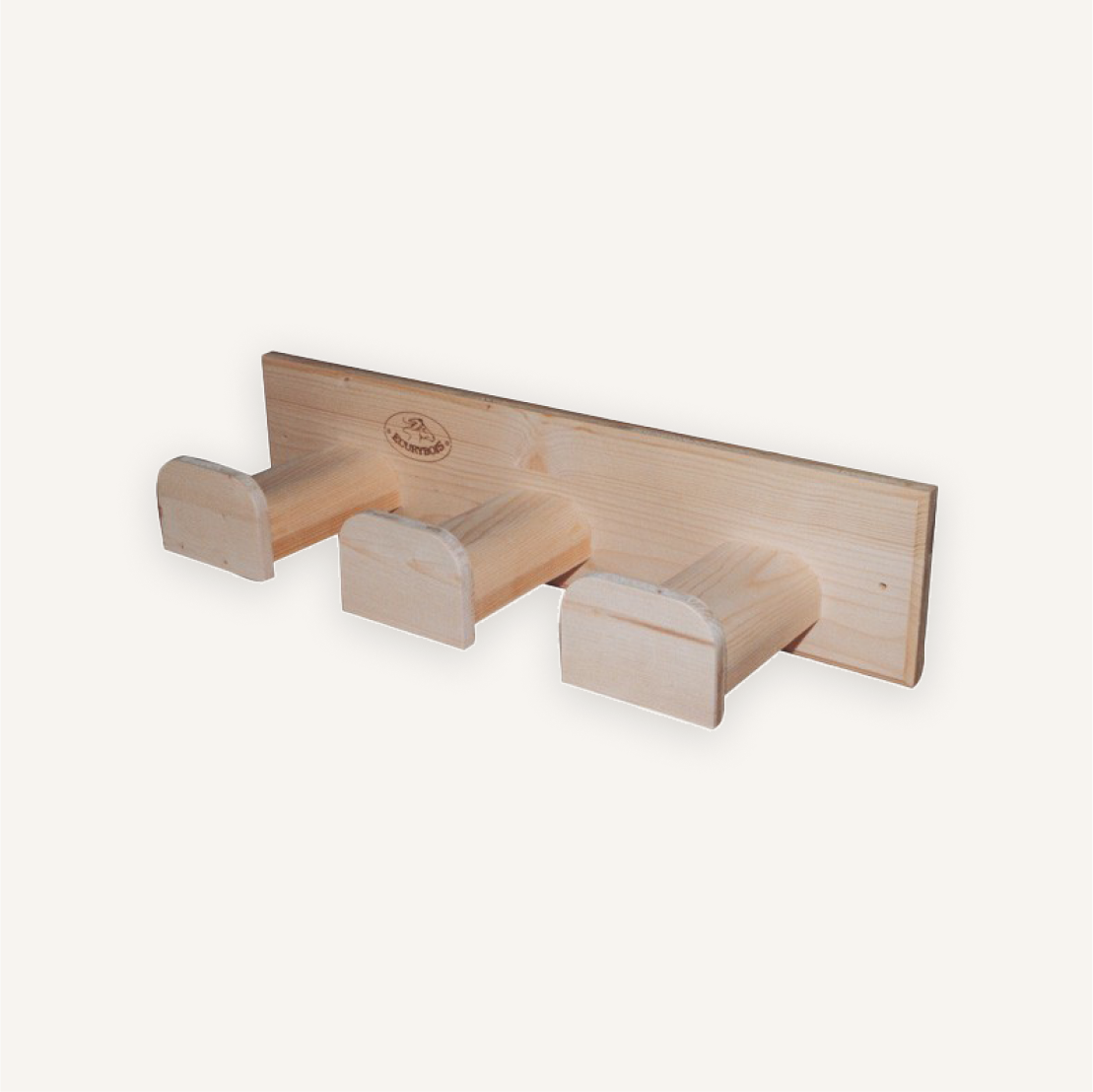 Entdecken Sie unseren wandmontierten Trensenhalter mit drei Halterungen, die ideale Lösung für die elegante und funktionale Aufbewahrung Ihrer Trensen, Trensen und Halfter.