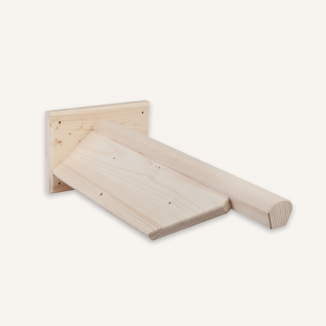 Prêt à être installé, ce porte-selle est monté sur un petit plateau mural en épicéa massif naturel, offrant une solution de rangement robuste et esthétique.